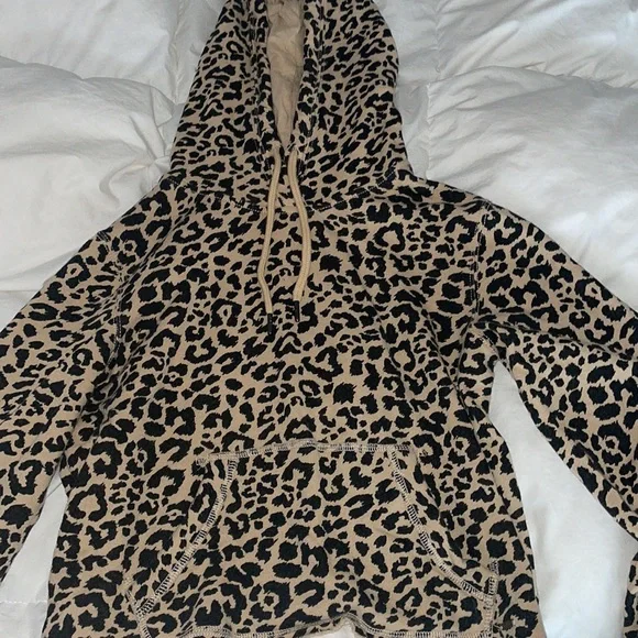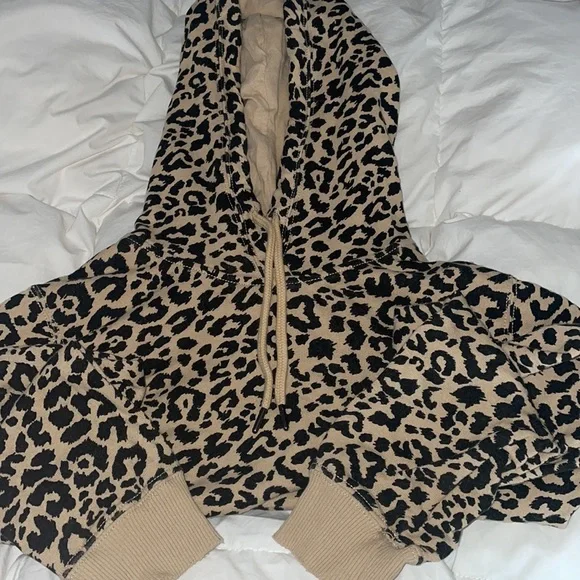 Hollister cheetah print cropped Black and Brown hoodie