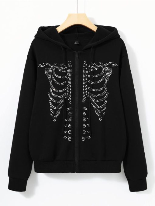 Home » Shop » Y2K Rhinestone Skeleton Black Hoodie